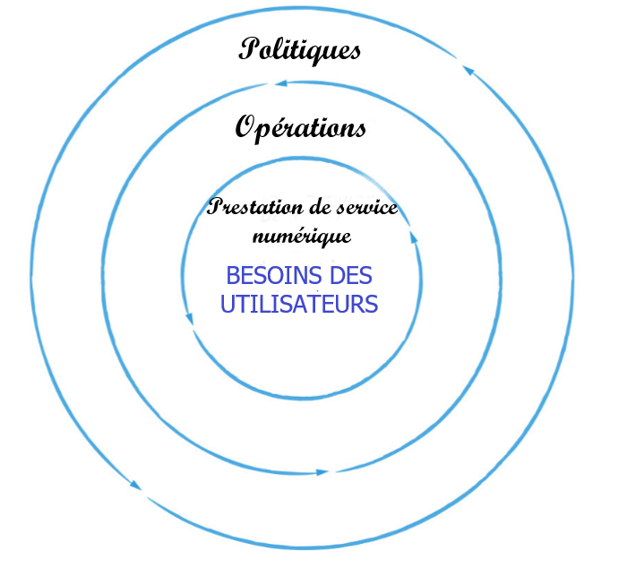 Le gouvernement axé sur la prestation de services voit l'institution et ses processus dans la perspective de ses utilisateurs, c'est-à-dire les membres du public auxquels les services gouvernementaux sont censés bénificier (généralement des individus et des familles, mais aussi des entreprises ou des organisations). Les besoins du gouvernement - i.e. respect de diverses réglementations, nécessité de fonctionner en silos, nécessité d'utiliser un langage complexe ou juridique - sont souvent en conflit avec les besoins des utilisateurs, et les gouvernements doivent trouver des moyens pratiques de promouvoir une culture de compréhension et de satisfaction des besoins des utilisateurs en respectant les contraintes du contexte du secteur public. Lorsque le gouvernement donne la priorité à ses propres besoins, à ses propres silos, à ses propres processus, nous ne sommes pas à la hauteur de l'idéal du "gouvernement du peuple, par le peuple, pour le peuple" sur lequel ce pays a été fondé.
